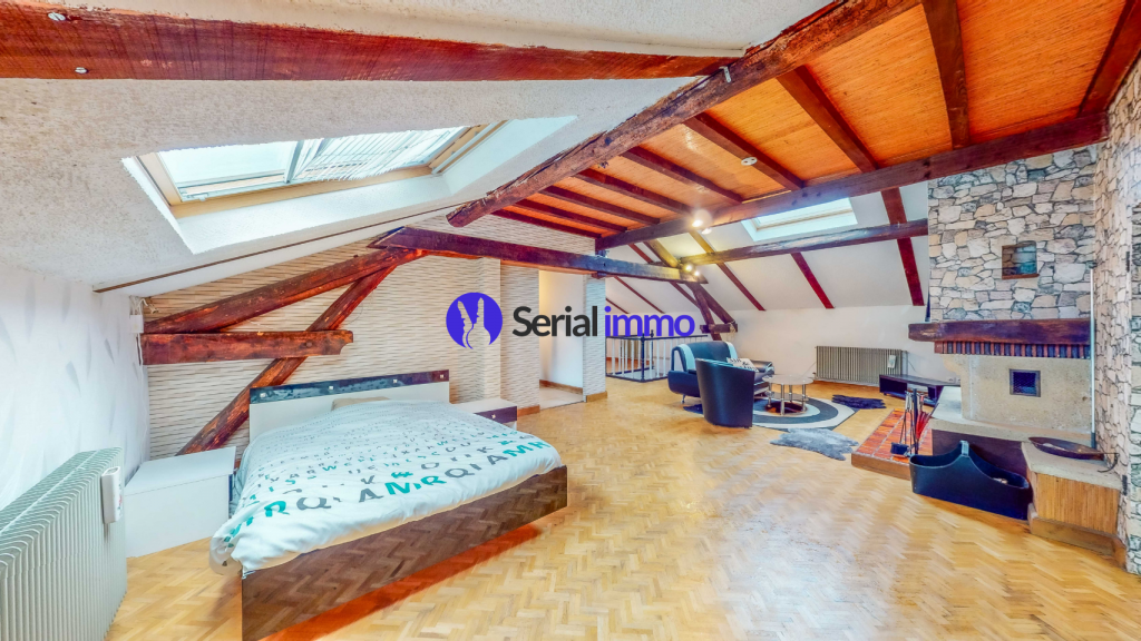 • Combles aménagés avec une cheminée à l’âtre et une cuisine équipée